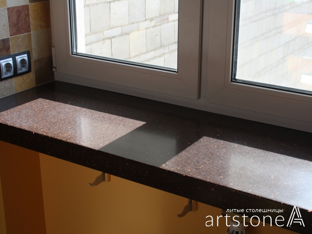 Длина столешницы для малогабаритной квартиры. Длина столешницы зависит от размеров помещения и размещаемых в нем предметов. Выбирая столешницу для кухни необходимо предусматривать встраиваемую технику: варочную поверхность, духовой шкаф, посудомоечную машину. При организации в угловой кухне рабочего треугольника между его элементами (мойкой, плитой и холодильником) как правило устанавливается столешница 120-140 см. Для прямой кухни подойдет столешница 160-180 см. При отсутствии необходимости разделения рабочей поверхности бытовой техникой, стандартам типовых квартир соответствует столешница 200 см, которая также отлично подойдет для барной стойки или кухни с островом. Для любой длины практичным решением станет столешница из искусственного гранита. Технология производства композитного материала позволят изготавливать и устанавливать столешницы без стыков и швов. Искусственный гранит к тому же отличается повышенной прочностью и непритязателен в уходе. Жир и красящие жидкости легко стираются с его поверхности. Особые свойства материала позволяют изготавливать столешницы различных форм и размеров.
